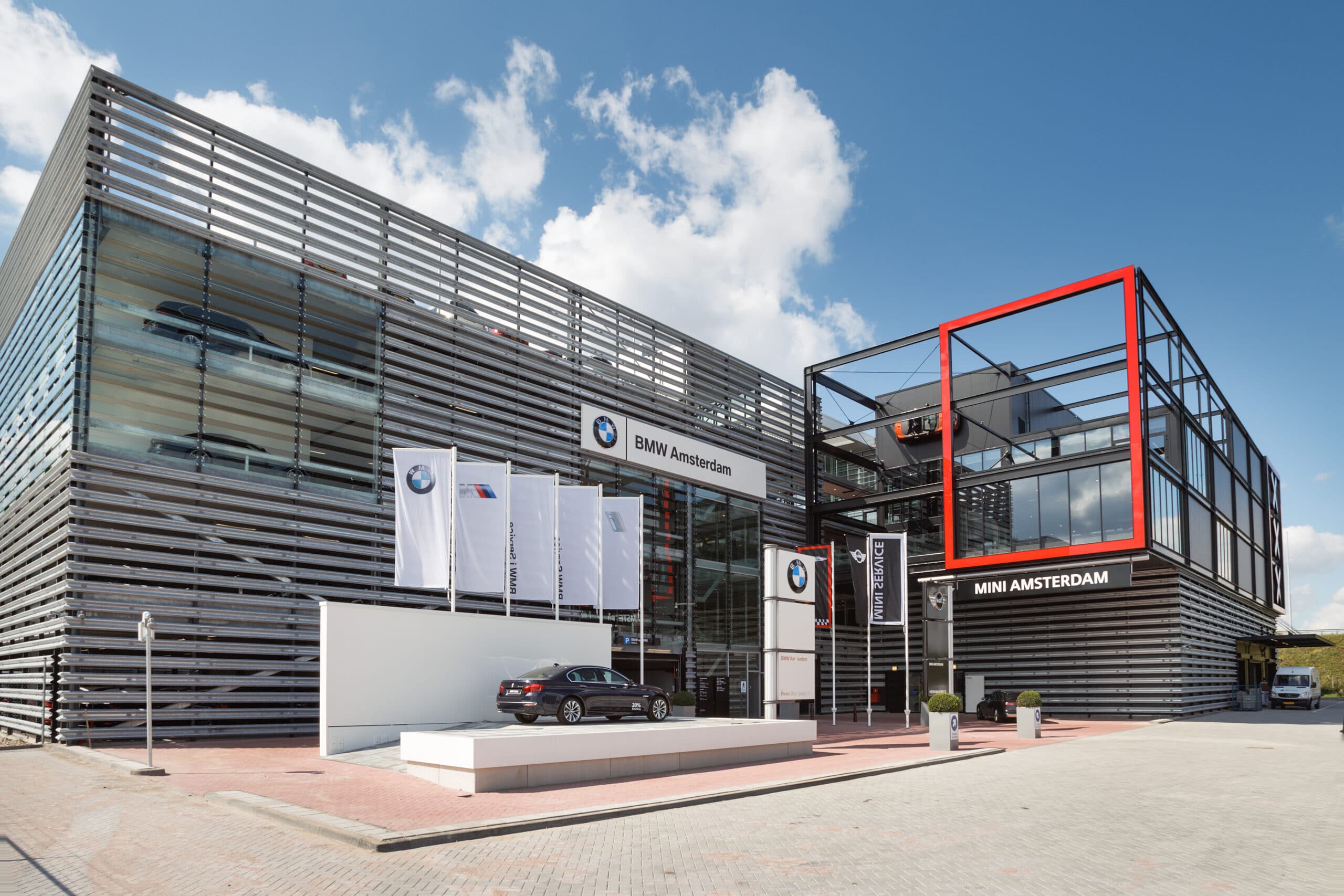 Samen met team Borghese Real Estate, Pleijsier Bouw, Mies Architectuur en de mannen van BMW MINI ontwikkelden en bouwden wij circa 24.000 m² aan showroom, kantoren en garage langs de A10 in Amsterdam.