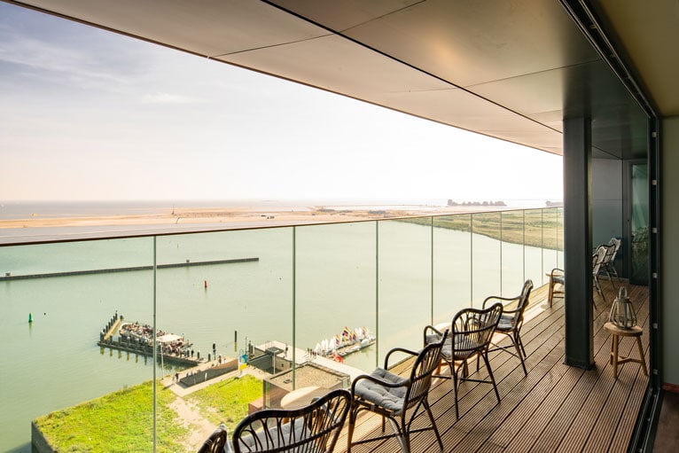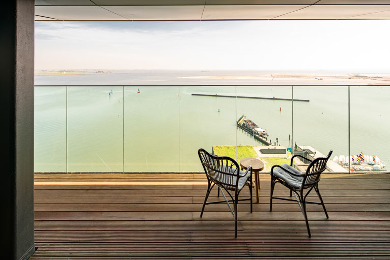 Breeze, het eerste 'zero-energy' hotel van Nederland. Gebouwd aan de oever van het IJmeer in Havenkwartier Amsterdam. 36 meter hoog, 198 hotelkamers, een restaurant, skylounge en fitness. Met gebruik van duurzame ecotechniek en de krachtbronnen aarde, water en wind hebben Borghese en Dutch Green Company hun hoge duurzaamheidsambitie waar kunnen maken.