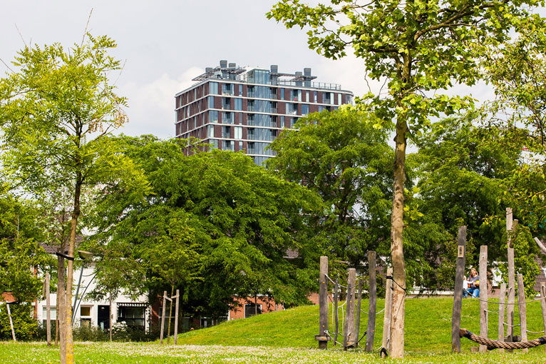 Dicht bij de Vecht, aan de rand van de Vogelenbuurt, realiseerde Borghese Real Estate 'In het Noorderlicht'. Dit multi-functionele gebouw biedt 220 appartementen van 30 m² tot 70 m² met eigen buitenruimte. Daarnaast is er plek voor sport- en horecafaciliteiten én... op het dak van de 17 verdiepingen hoge toren ligt een dakterras met schitterend uitzicht.